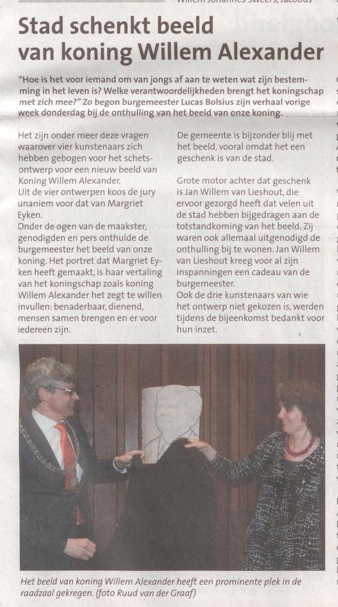 The sculpture 'Willem-Alexander' was unveiled on April 24, 2014 in the presence of Mayor Lucas Bolsius and many invited guests