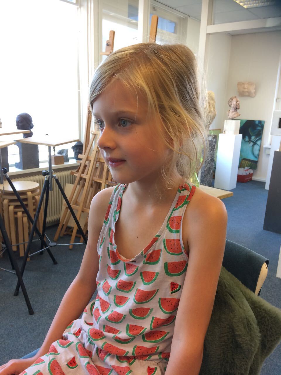 Nora, 7 jaar: klein keramisch portret, 20 cm | Girl 7 years old