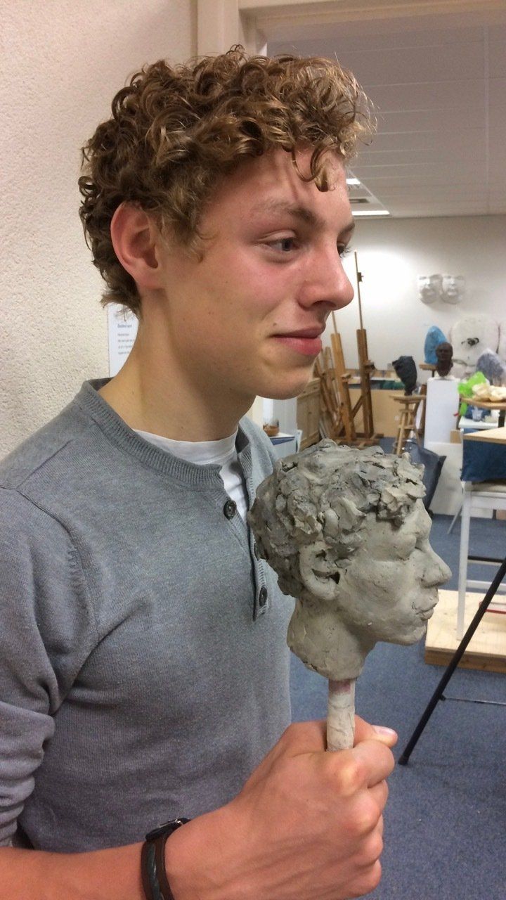 Pieter, 16 jaar: klein keramisch portret, 22 cm | Boy, 16 years old