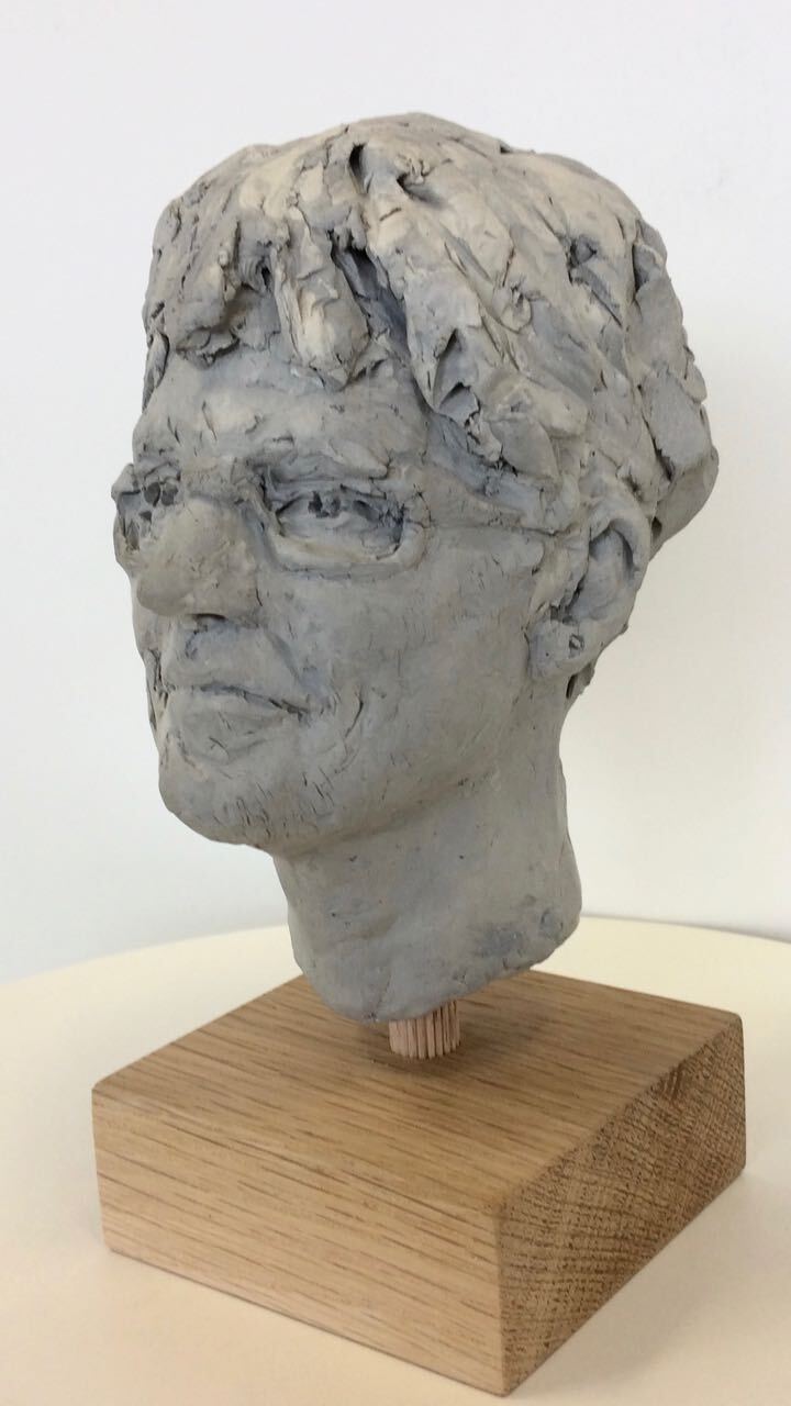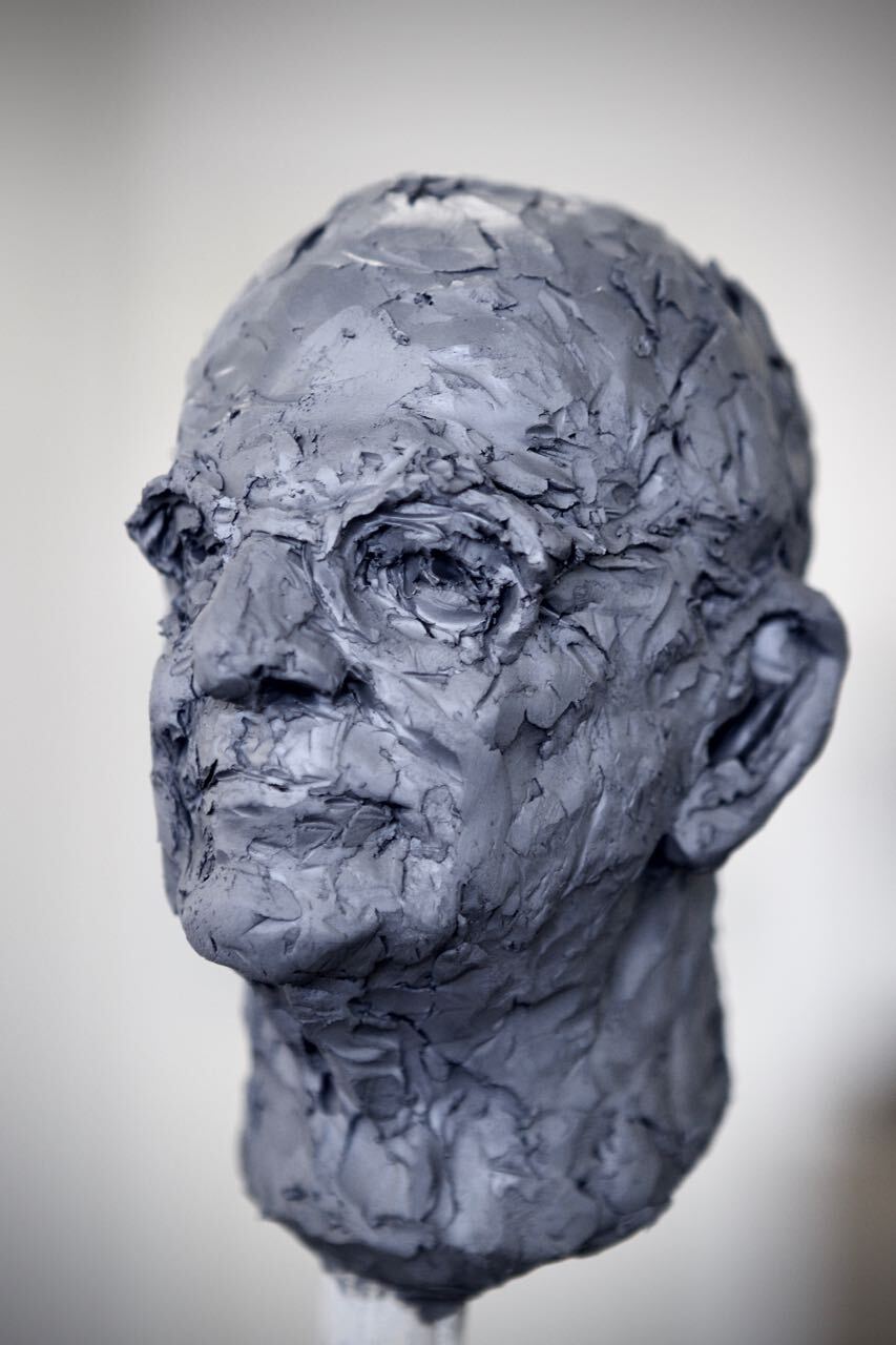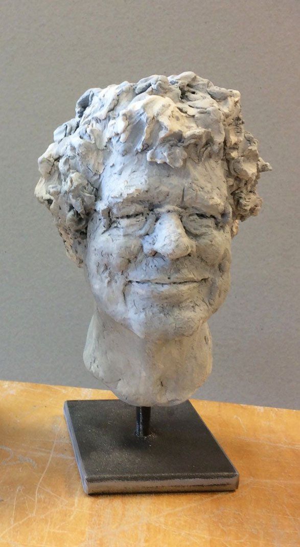 Bram, 67 jaar, klein keramisch portret, 17 cm, grijze fijne chamotte, sokkel graniet 2020
