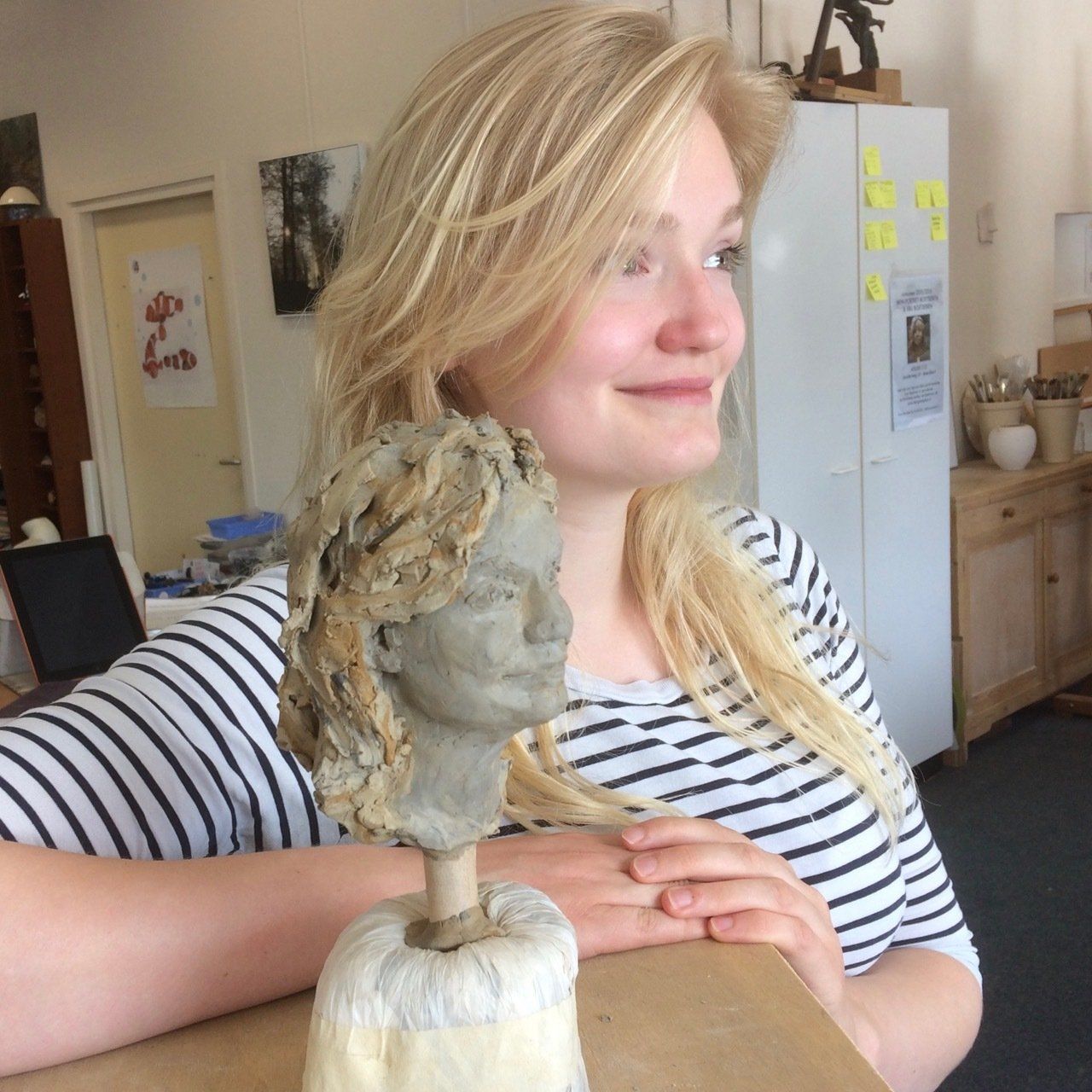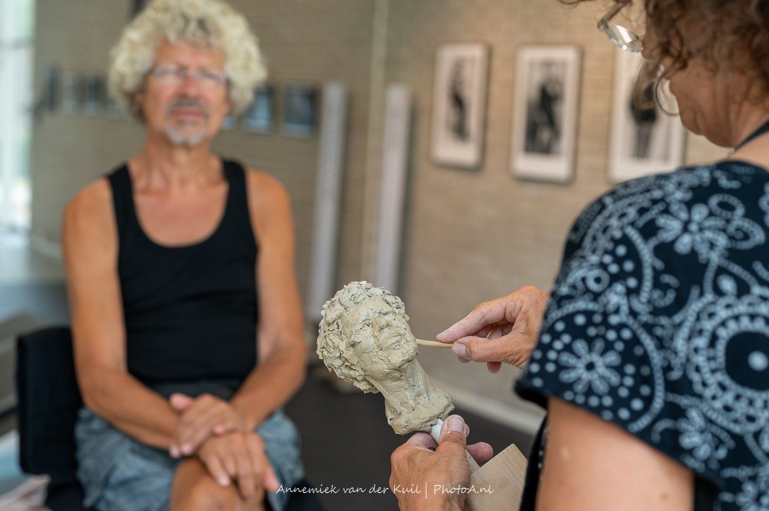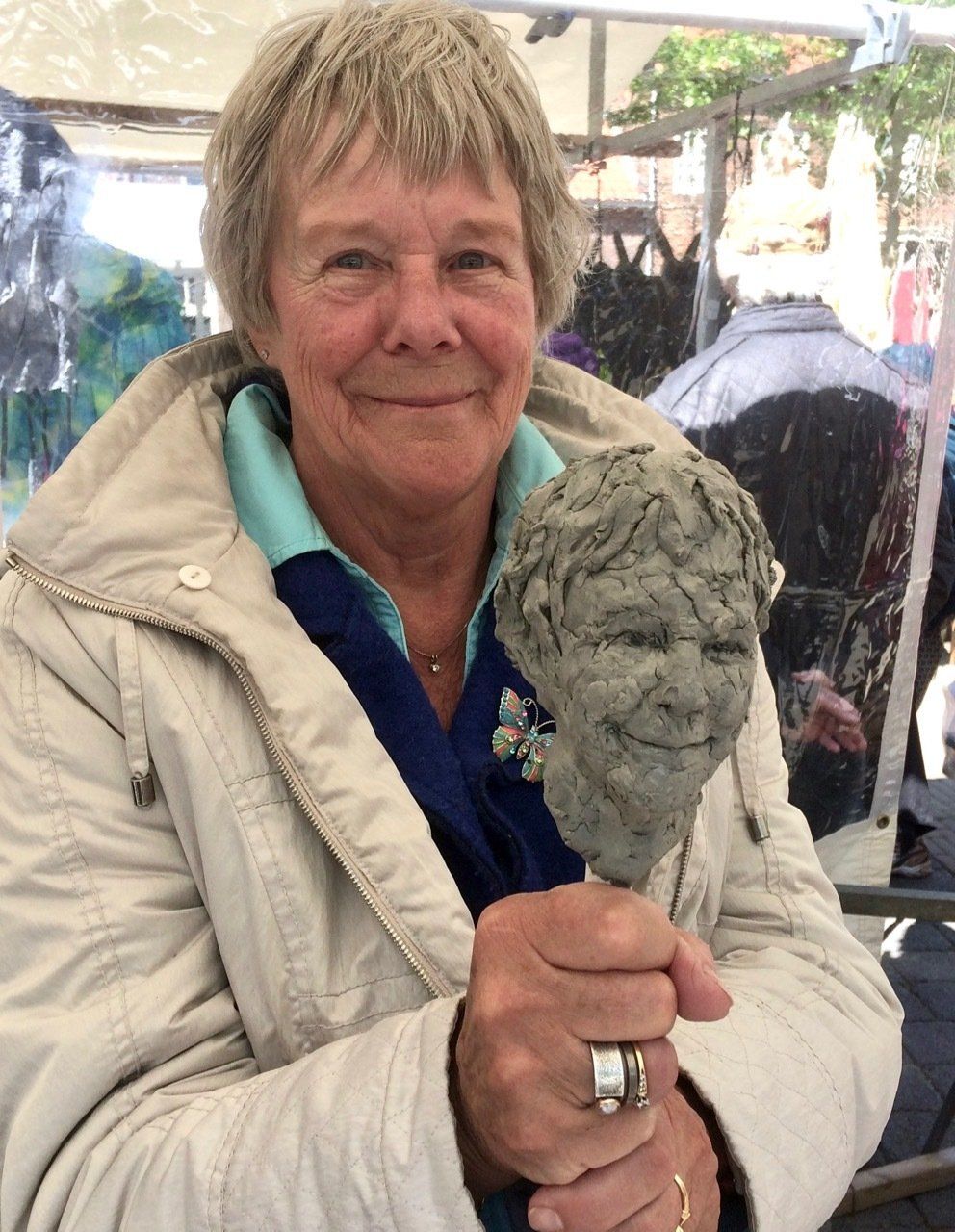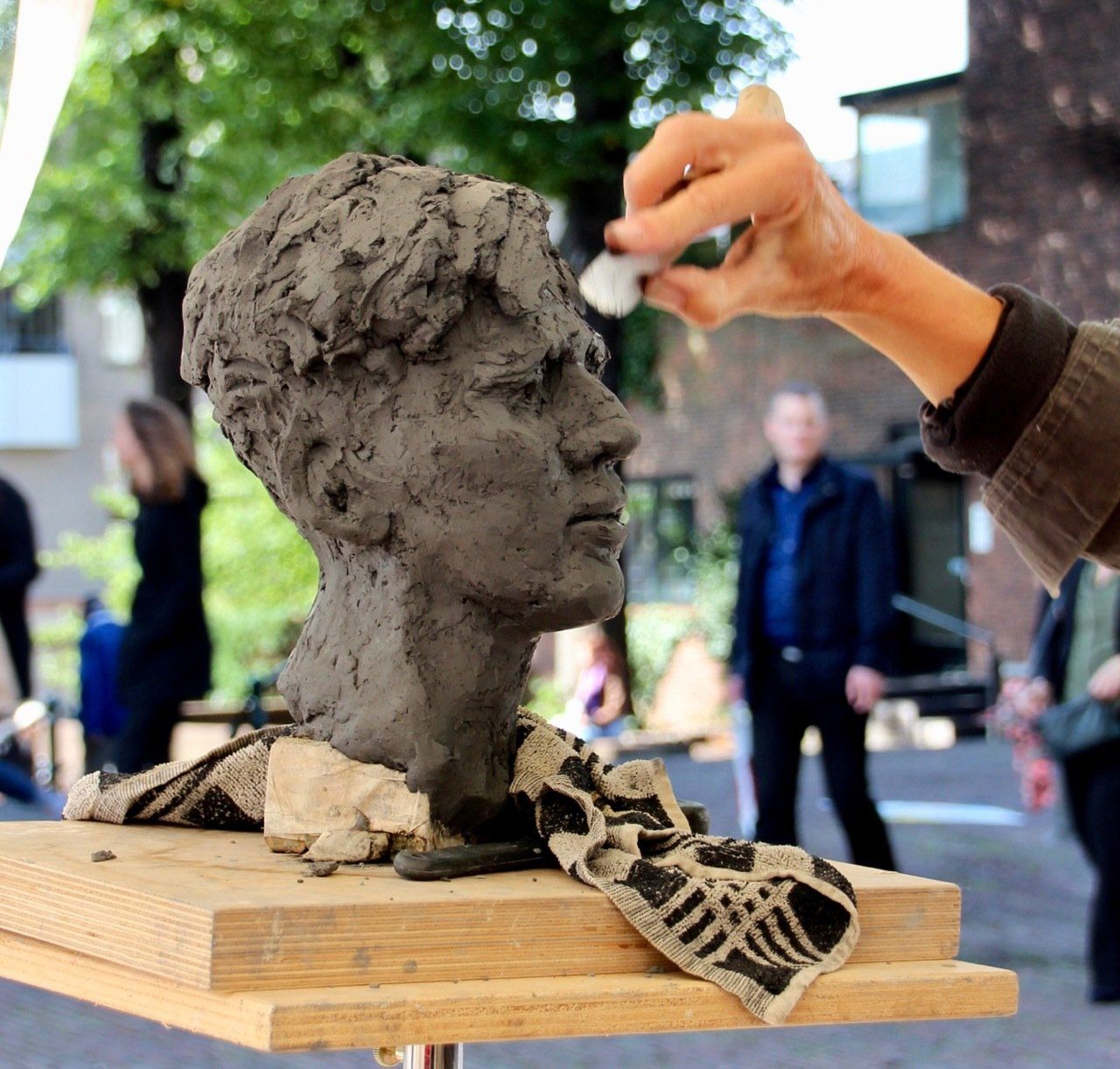 Portretboetserenop keramiekmarkten, festivals, de artmarket in Amsterdam, tijdens exposities en in het atelier. Van een snelle kleine portretschets tot grote expressieve portretten in de open lucht geboetseerd. Er ontstaan mooie gesprekken terwijl ik boetseer en prachtige ontmoetingen met een grote verscheidenheid aan mensen van over de hele wereld.